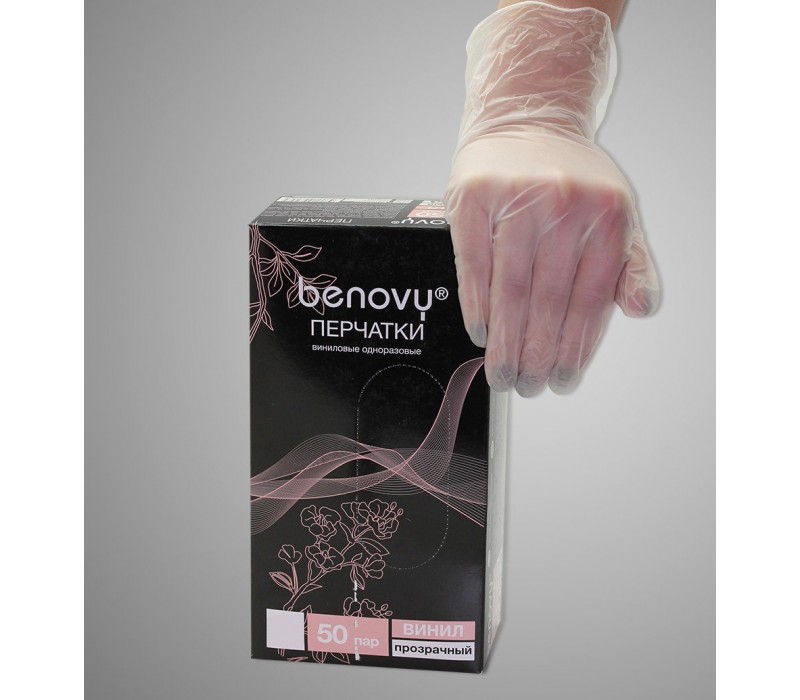 Одноразовые виниловые перчатки 100 шт, Размер M